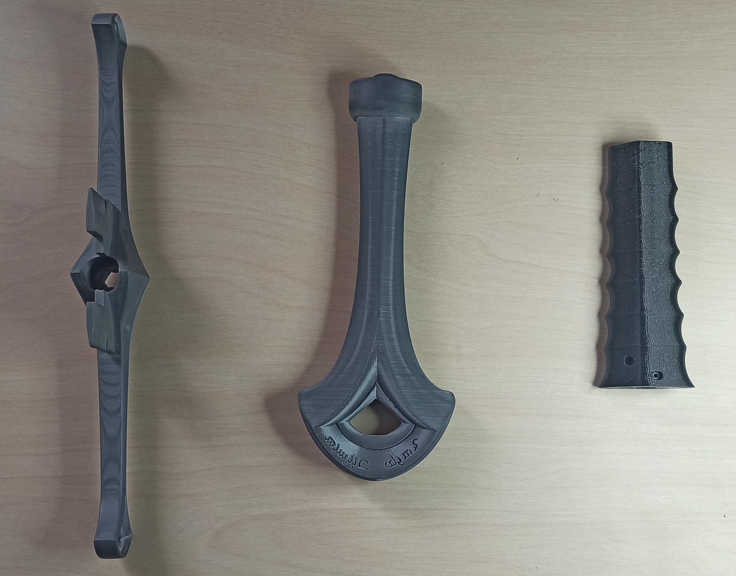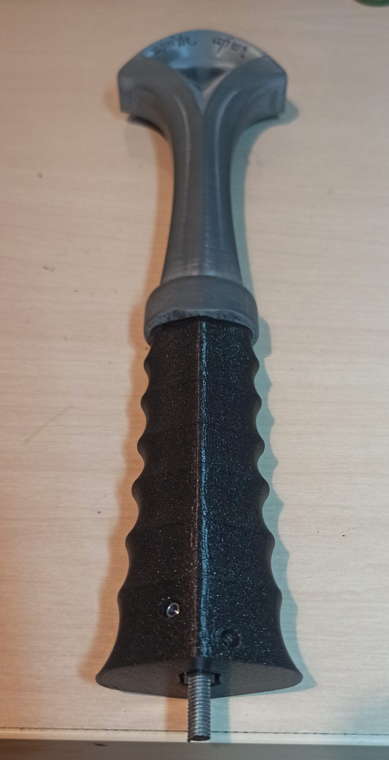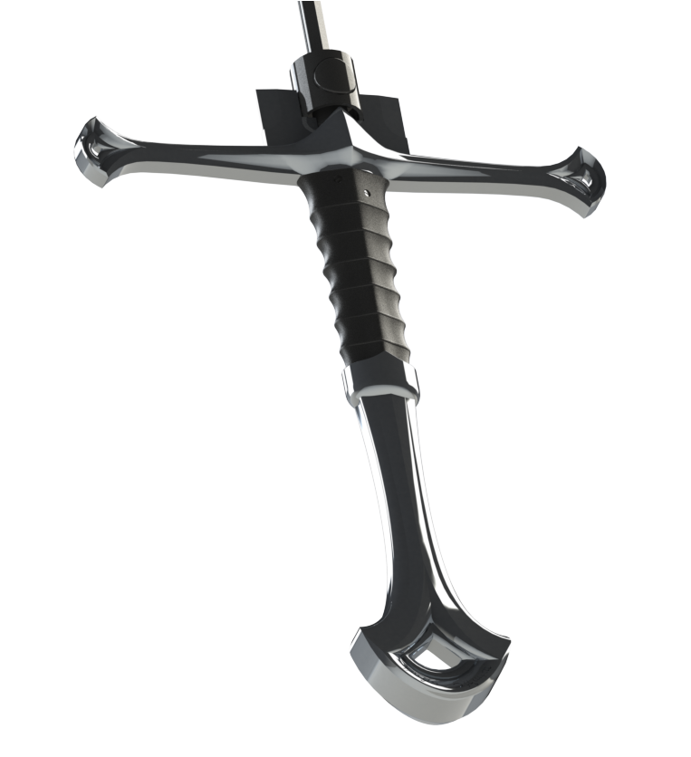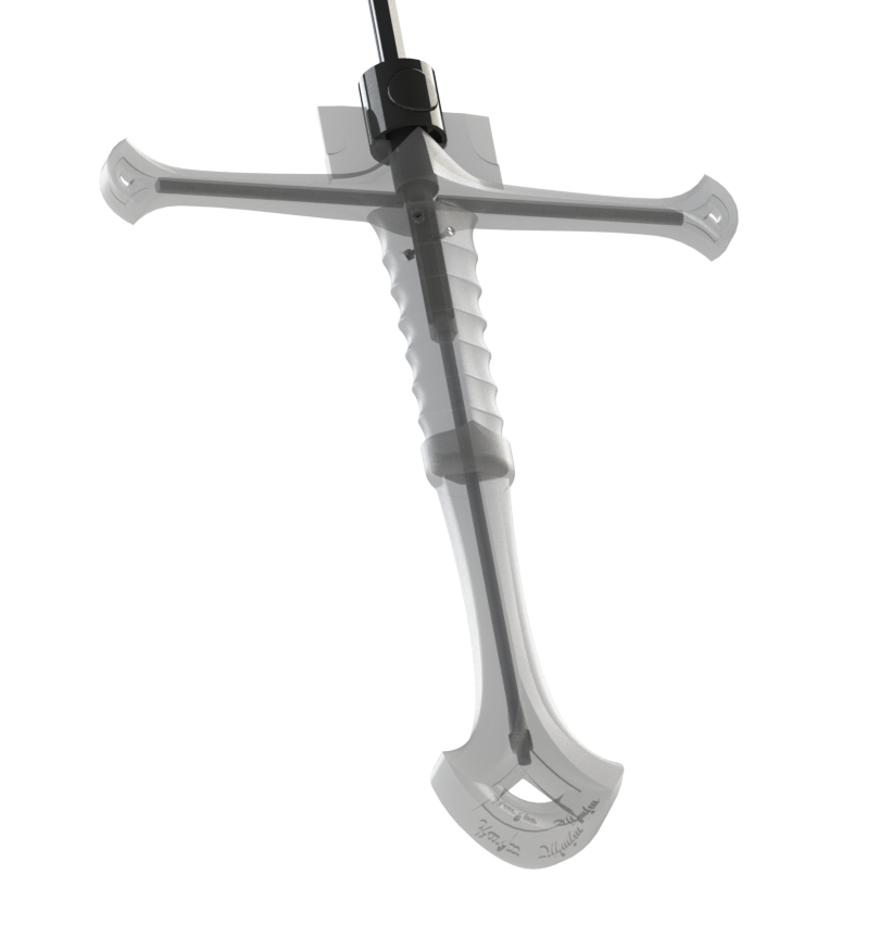 Diseñar un mango de paraguas con forma de espada que combine estética y funcionalidad, manteniendo comodidad en el uso.